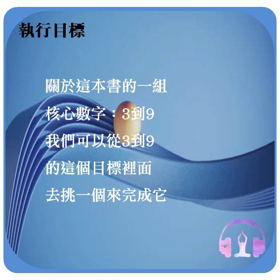 還記得我們所提到關於這本書的一組核心數字是3到9 嗎? 所以我們可以從3到9的這個目標裡面去挑一個來完成它。