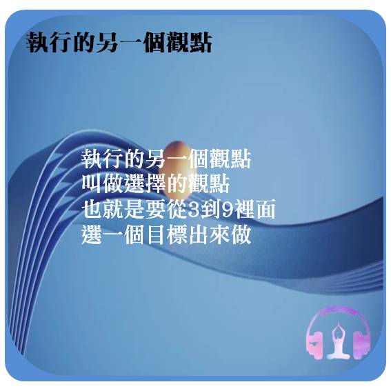 關於執行的另外一個觀點,叫做選擇的觀點,也就是我當天要選3到9裡面,我要選哪一個目標出來做?