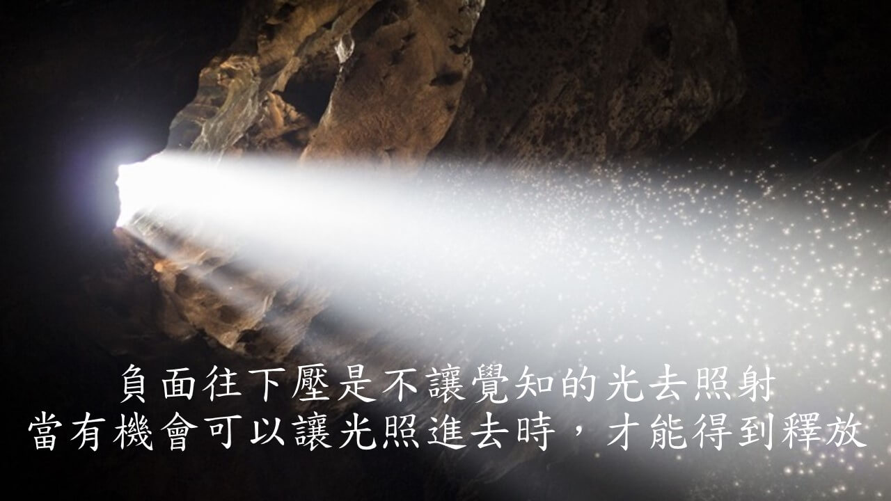 才有機會浮上來才有機會得到釋放,外在正面好的才會出現,選擇壓抑明明知道不去處理才會擋住光。