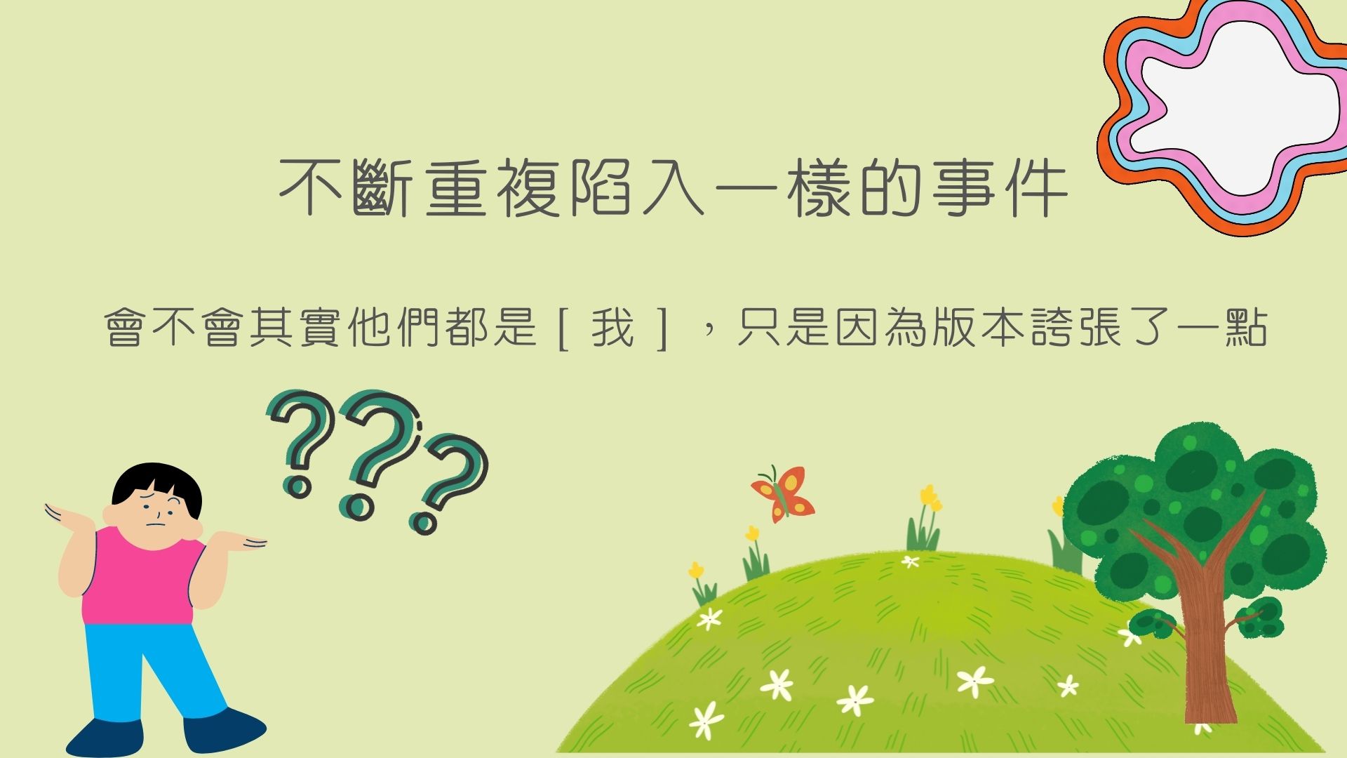 但這些事件,有一天我突然意識到,我不也是發生一樣的事情嗎?會不會其實他們都是[我],只是因為版本誇張了一點,所以我才不會覺得自己跟他們一樣。
