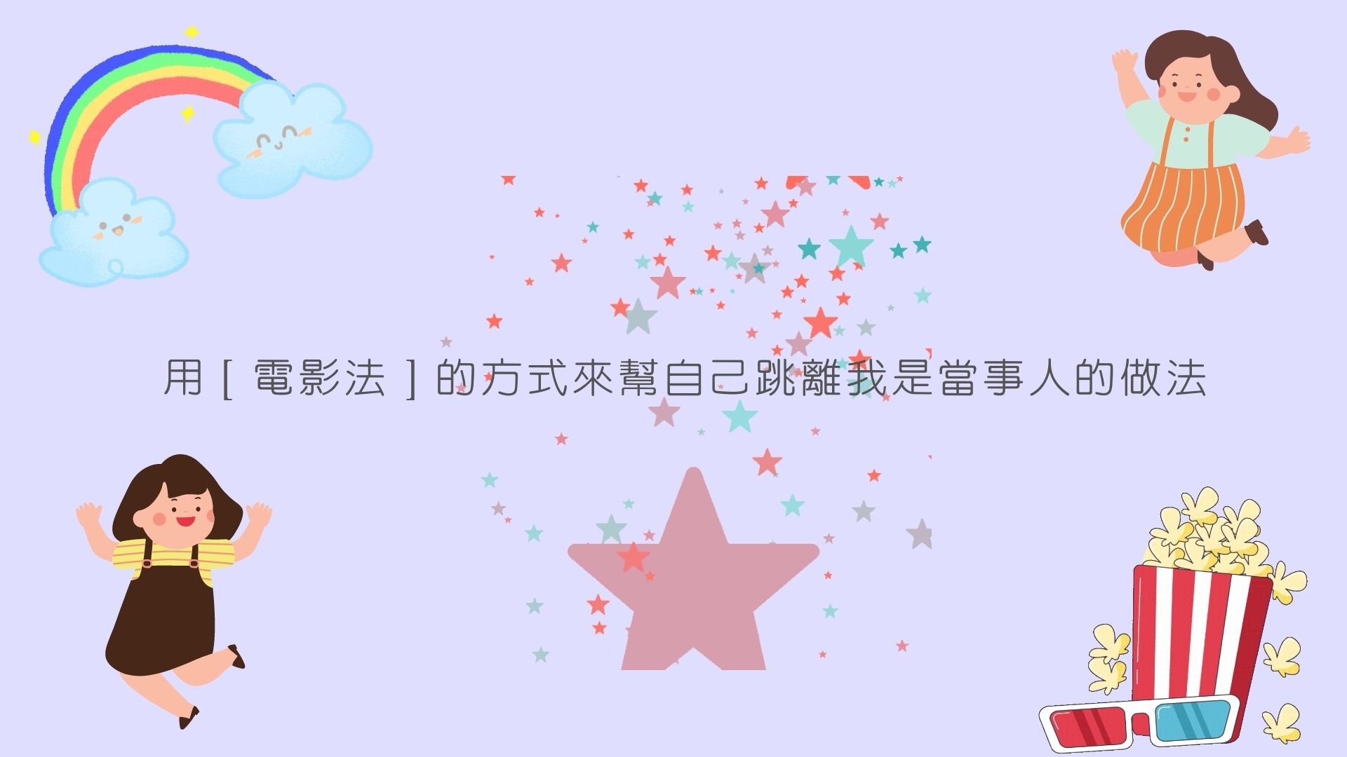 當我今天發生一件看似困難或是不喜歡的事情,我這邊用一種[電影法]的方式來幫自己跳離我是當事人的做法。
