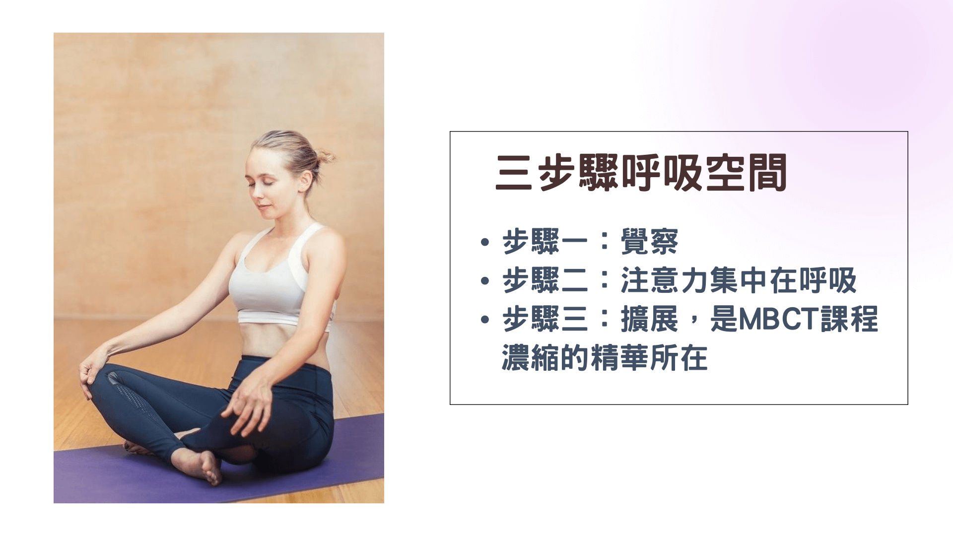 在我們的練習裡面,MBCT有一個叫做三步驟呼吸空間。