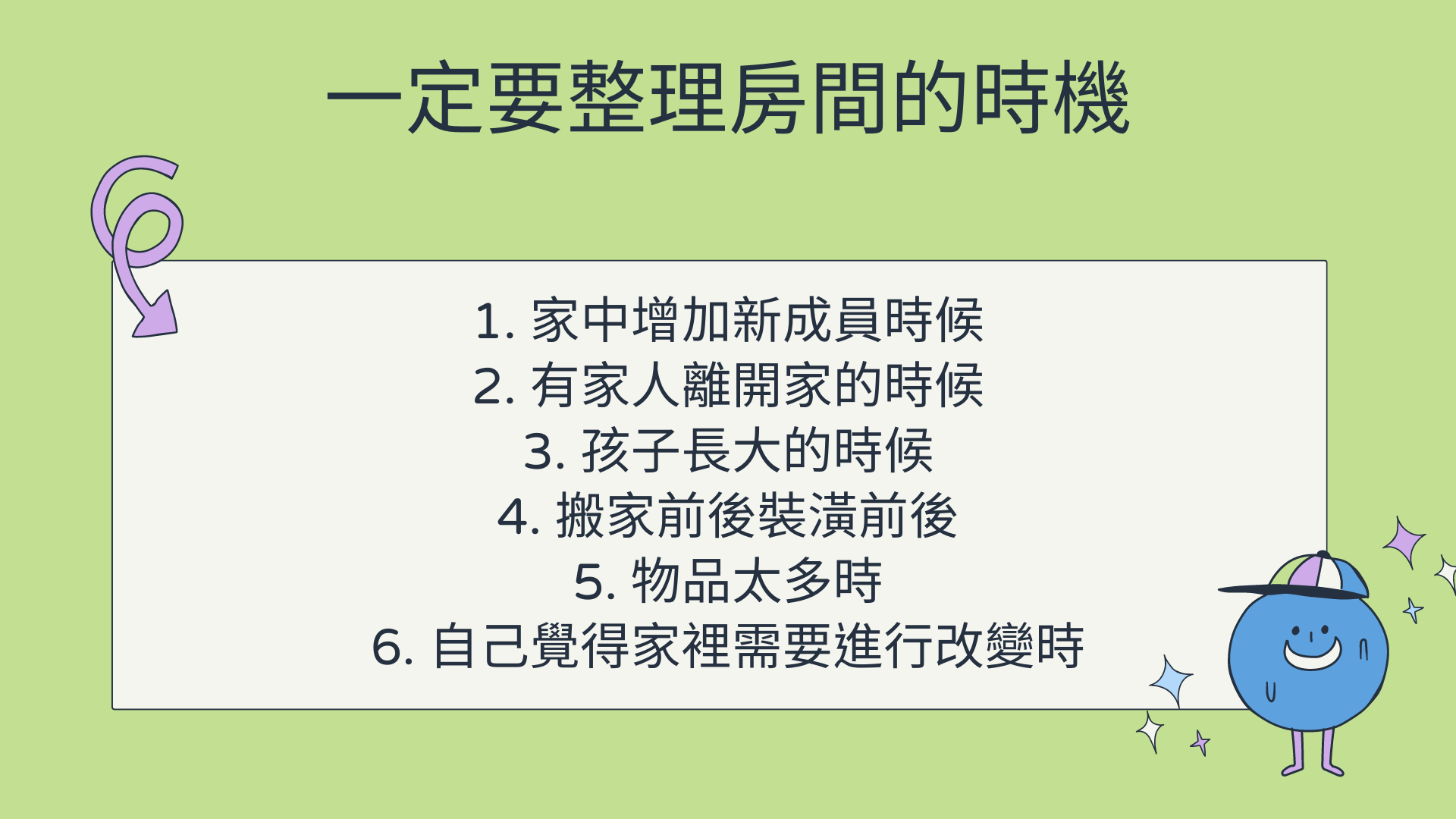 最後,摘錄書中幾個一定要整理房間的時機給大家參考