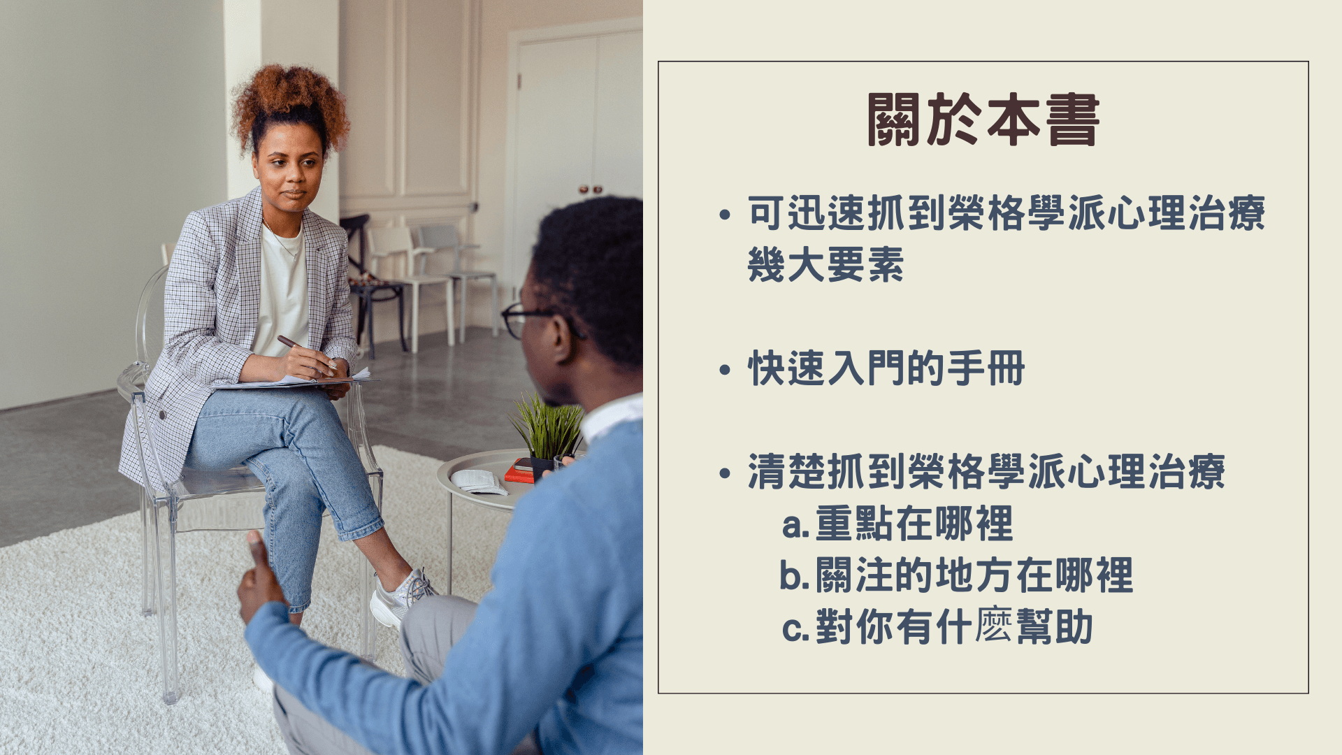 是一本可以讓你短時間快速抓到榮格學派心理治療重點的書