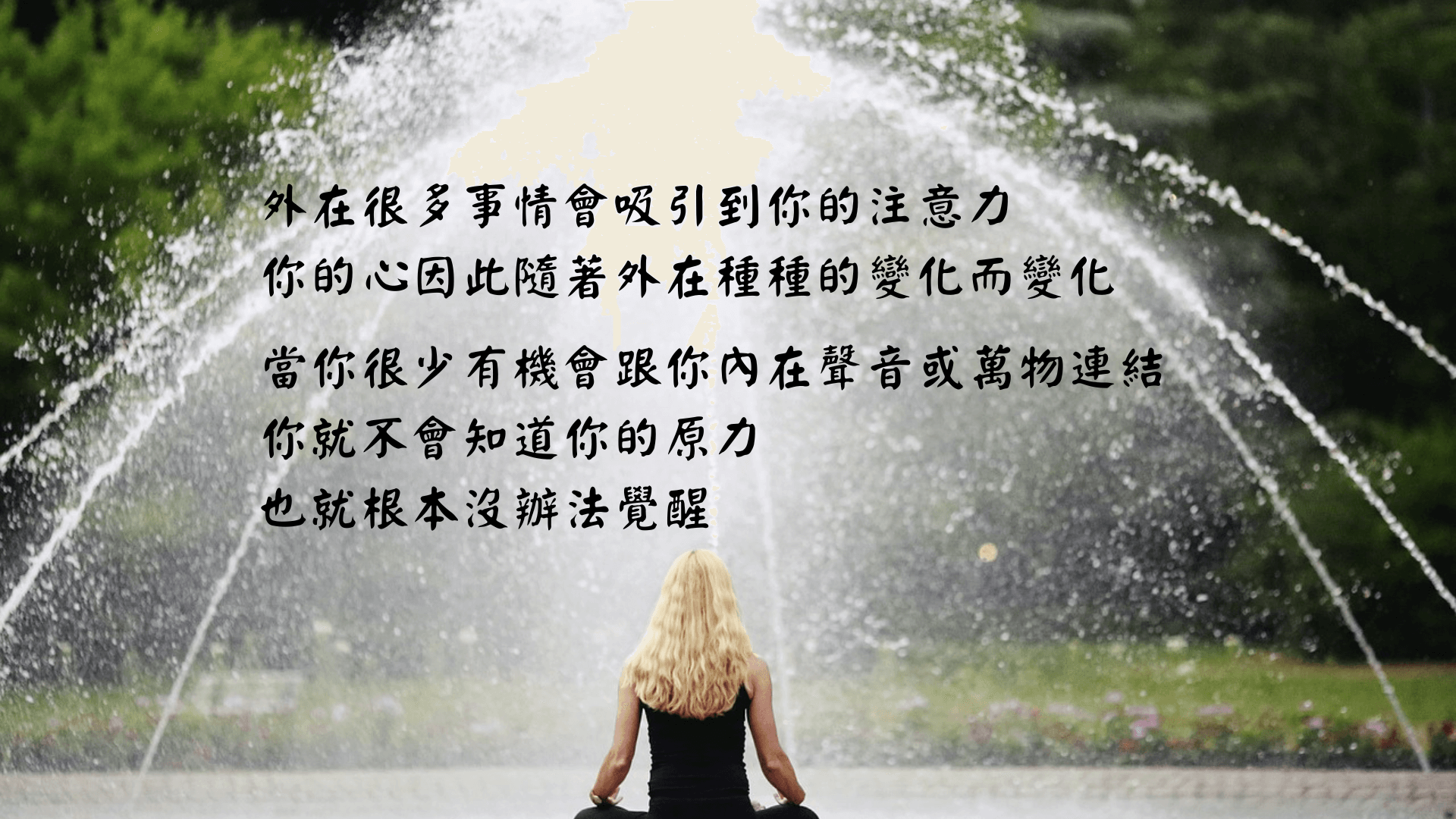 也因此,你就很少會有機會,去跟你內在的聲音或萬物做連結,你也就不會知道你的原力,也根本就沒有辦法覺醒。
