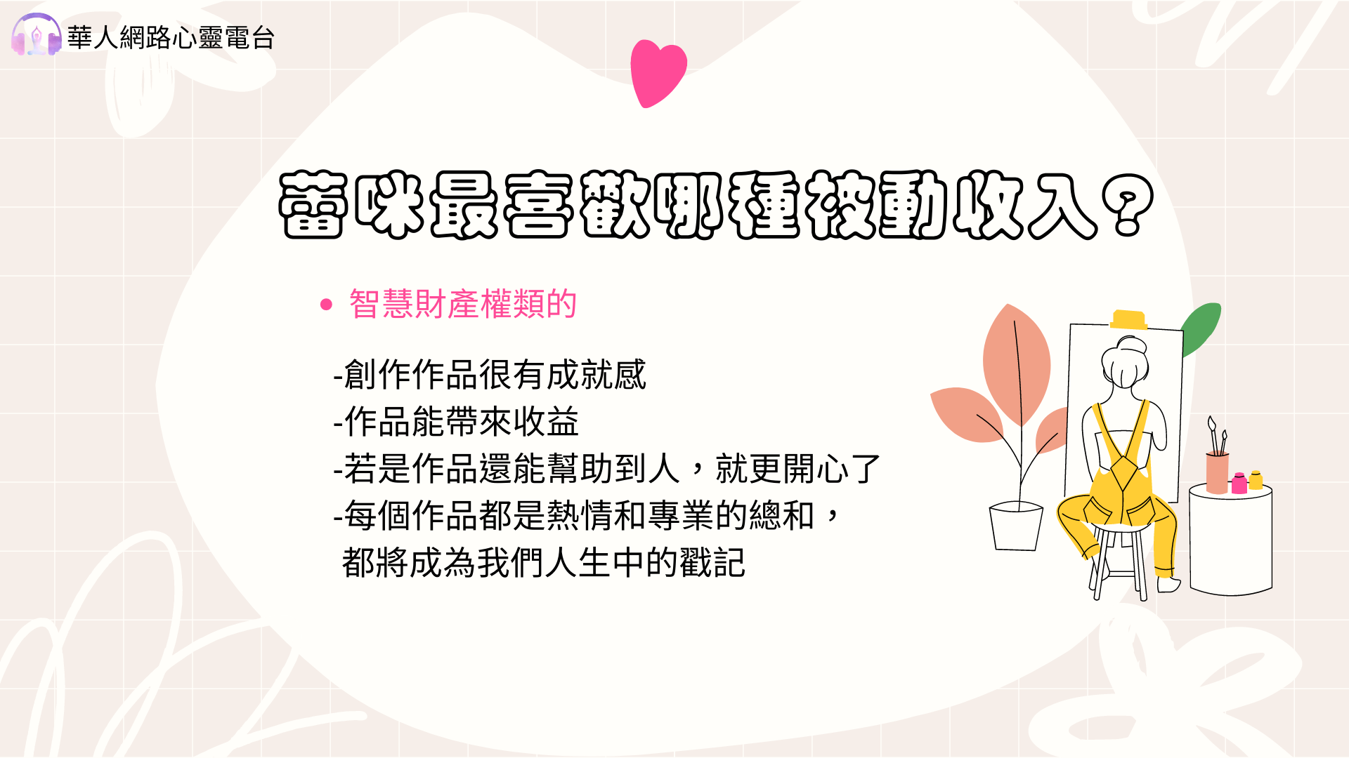 蕾:我最喜歡的被動收入,其實是〝智慧財產權類〞的被動收入。