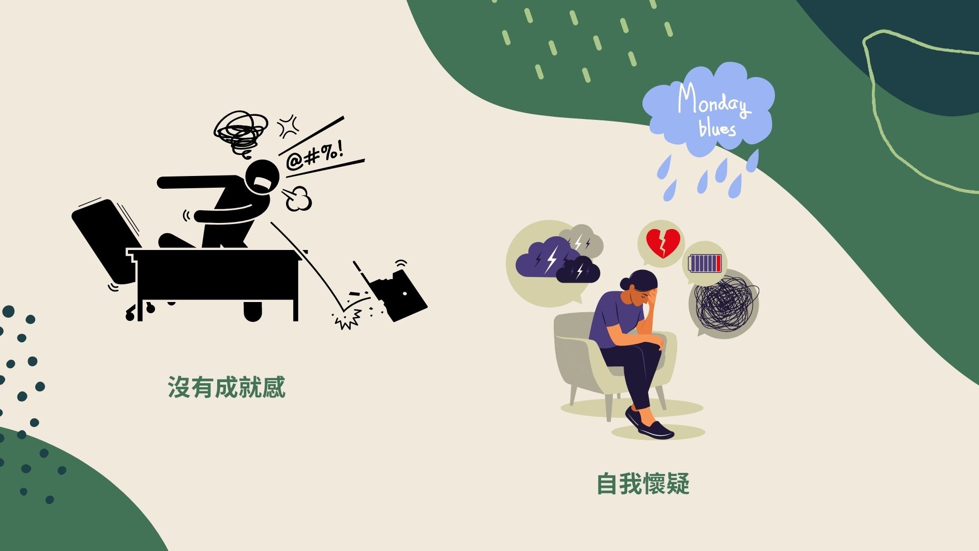 然後有時候想到說工作真的很沒成就,或者說想到要上班真的很厭世。
