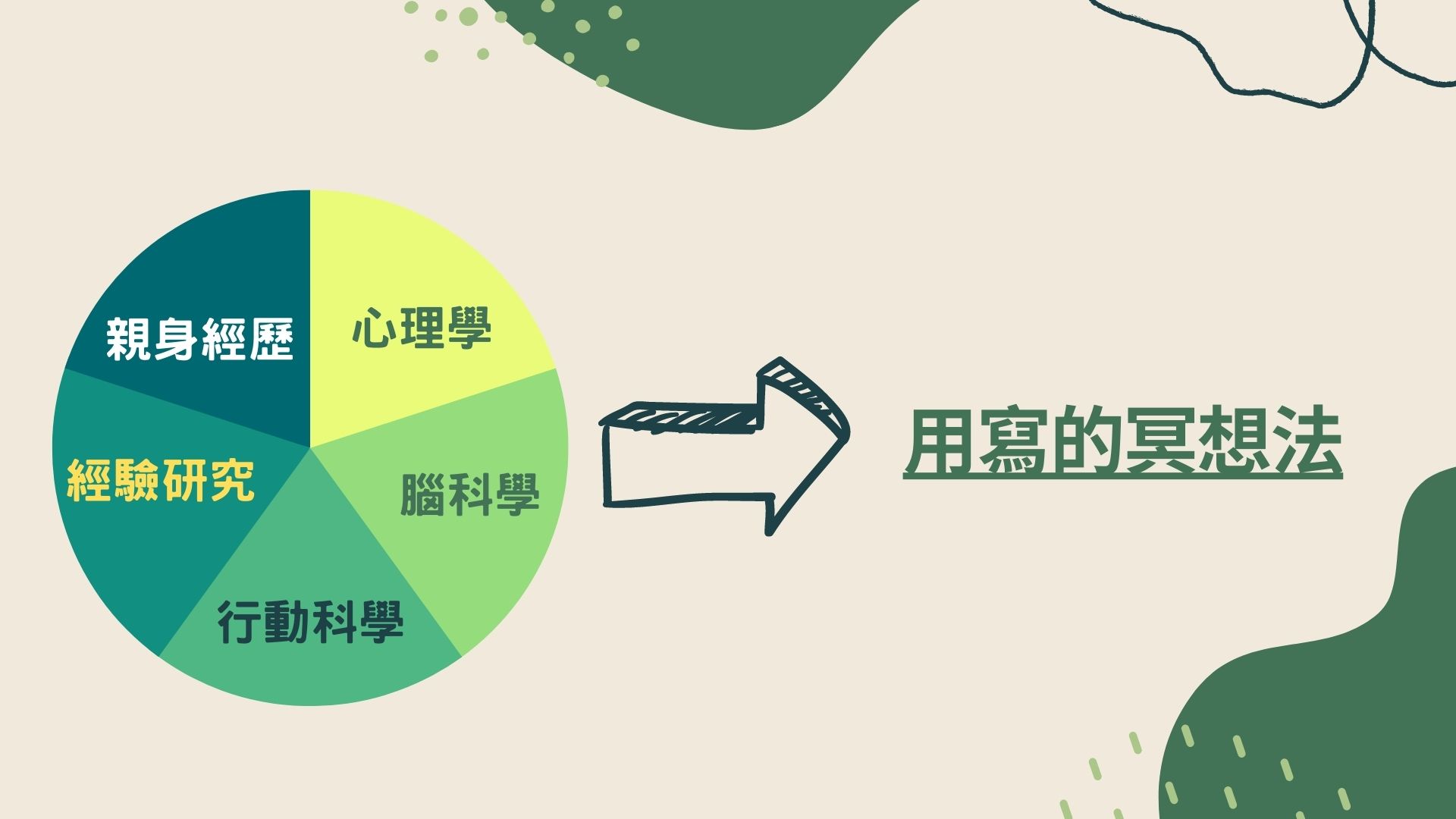 反而冥想以前我們都是說用想的,結果他說,沒有,你要用寫的,然後來整理你自己的身心,所以它的效果其實跟你坐禪是一模一樣的,而且又很簡單