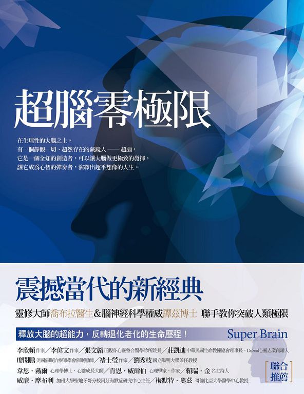 現在,靈修大師喬布拉醫生與神經科學權威譚茲博士,要告訴你一個突破人類極限的辦法:由你的意識當家作主,重塑大腦成為一個超級存在。因為你那不足三磅重的大腦,有能力進行不可思議的療癒及持續不斷的重塑。透過這樣的超腦,可以解決基礎大腦難以或無法解決的人生難題或病痛,提升生命的品質,超越感官的尋常接收體驗,更深刻感受到生而為人的幸福及美好。
