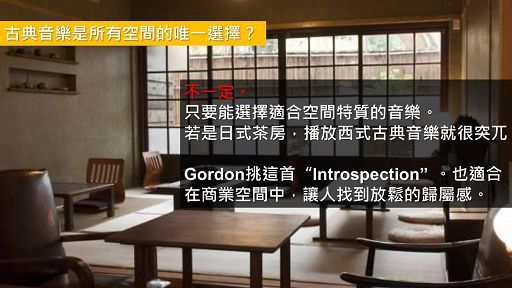 聽聽音樂家Gordon為大家精選和推薦的各式適合不同空間播放的好音樂。