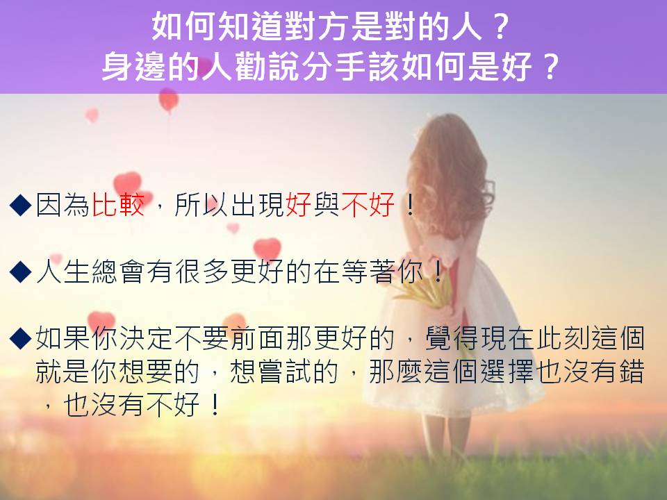 今天想與你分享:親密關係-如何知道對方是對的人?身邊的人勸說分手該如何是好?