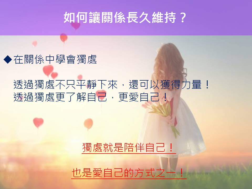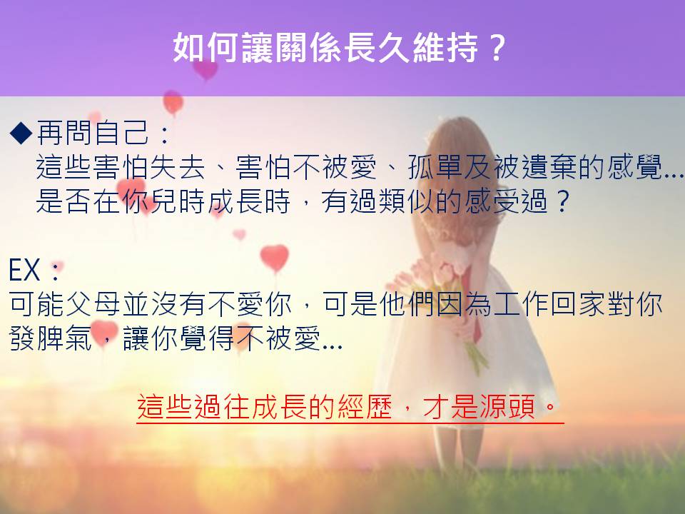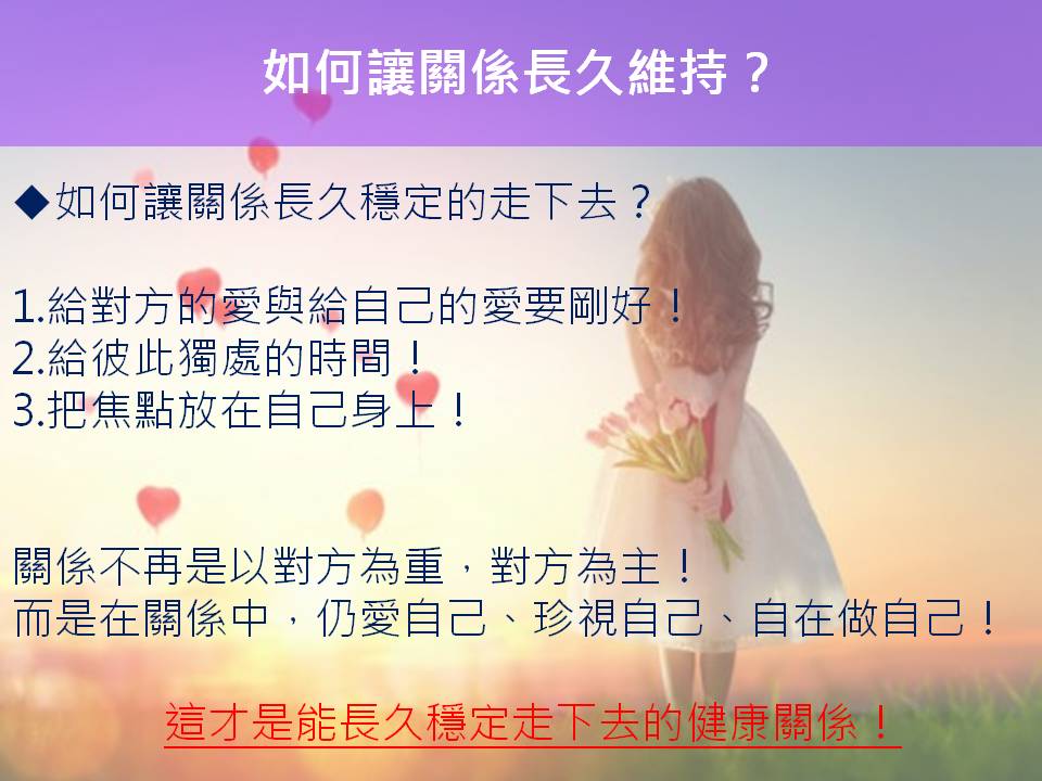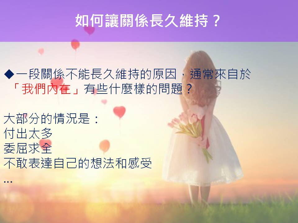而今天我想與你分享的是,如何讓關係長久維持?