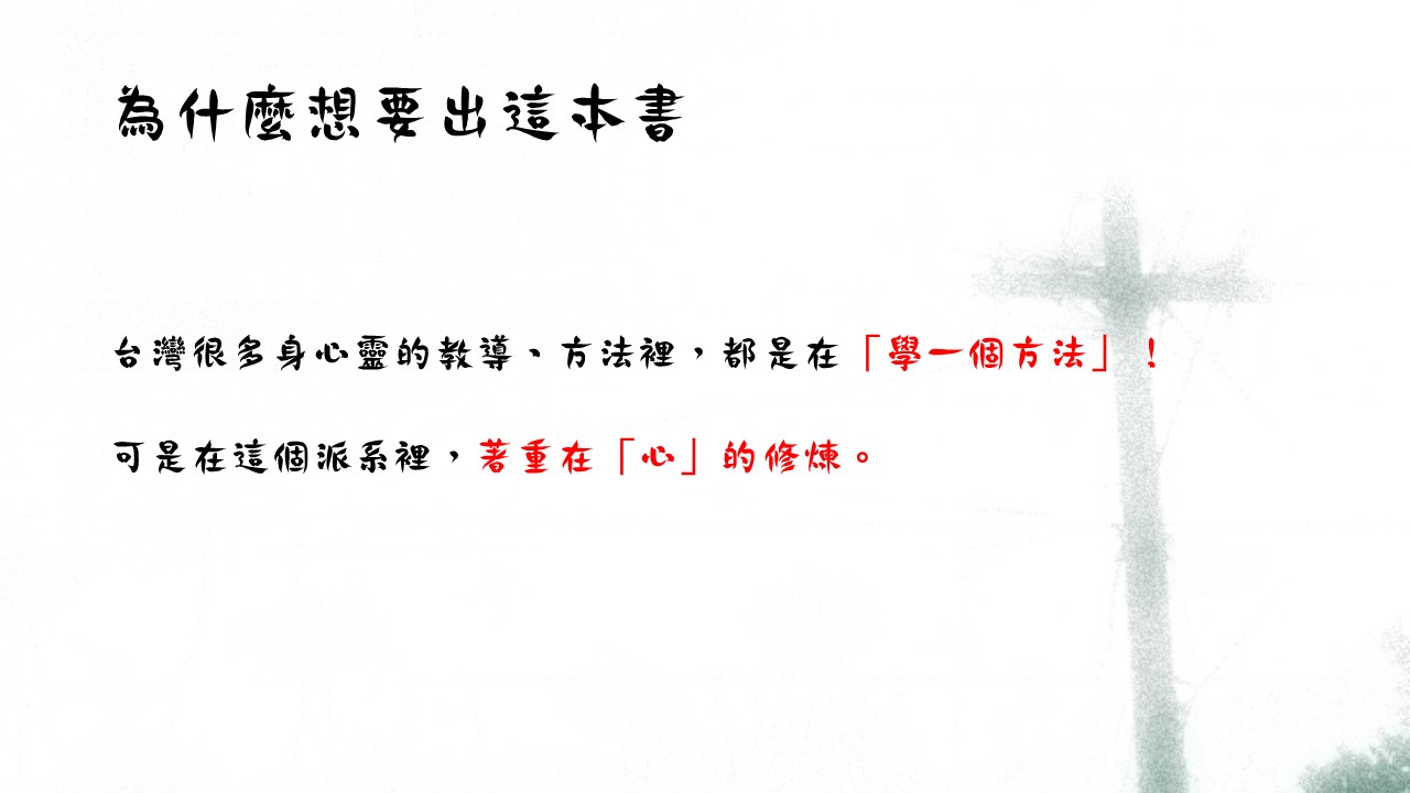 我覺得在台灣很多身心靈的教導、方法裡,都是在「學一個方法」!