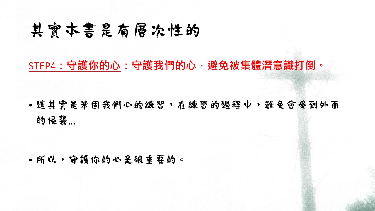 我們常會覺得有很多東西在侵襲我們,我們雖然很努力守護我們的心,但難免會被集體潛意識打倒。