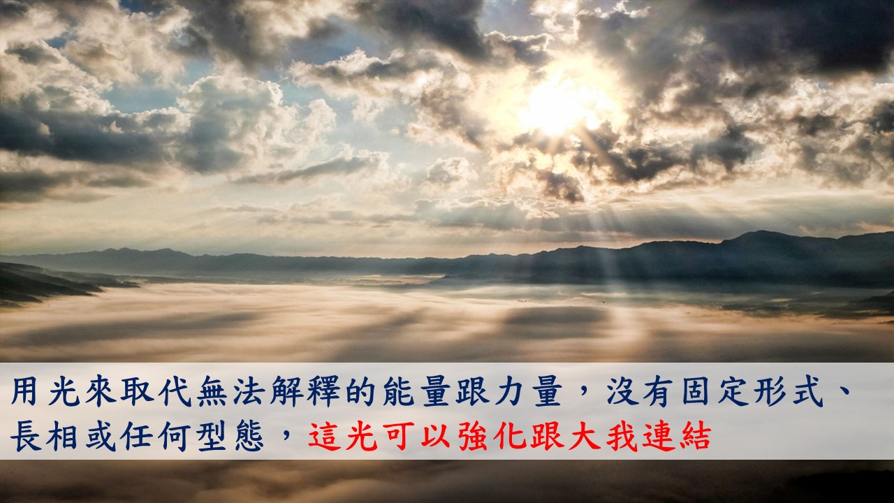 1. 光沒有固定形式、長相或任何型態,這光可以強化跟大我連結
