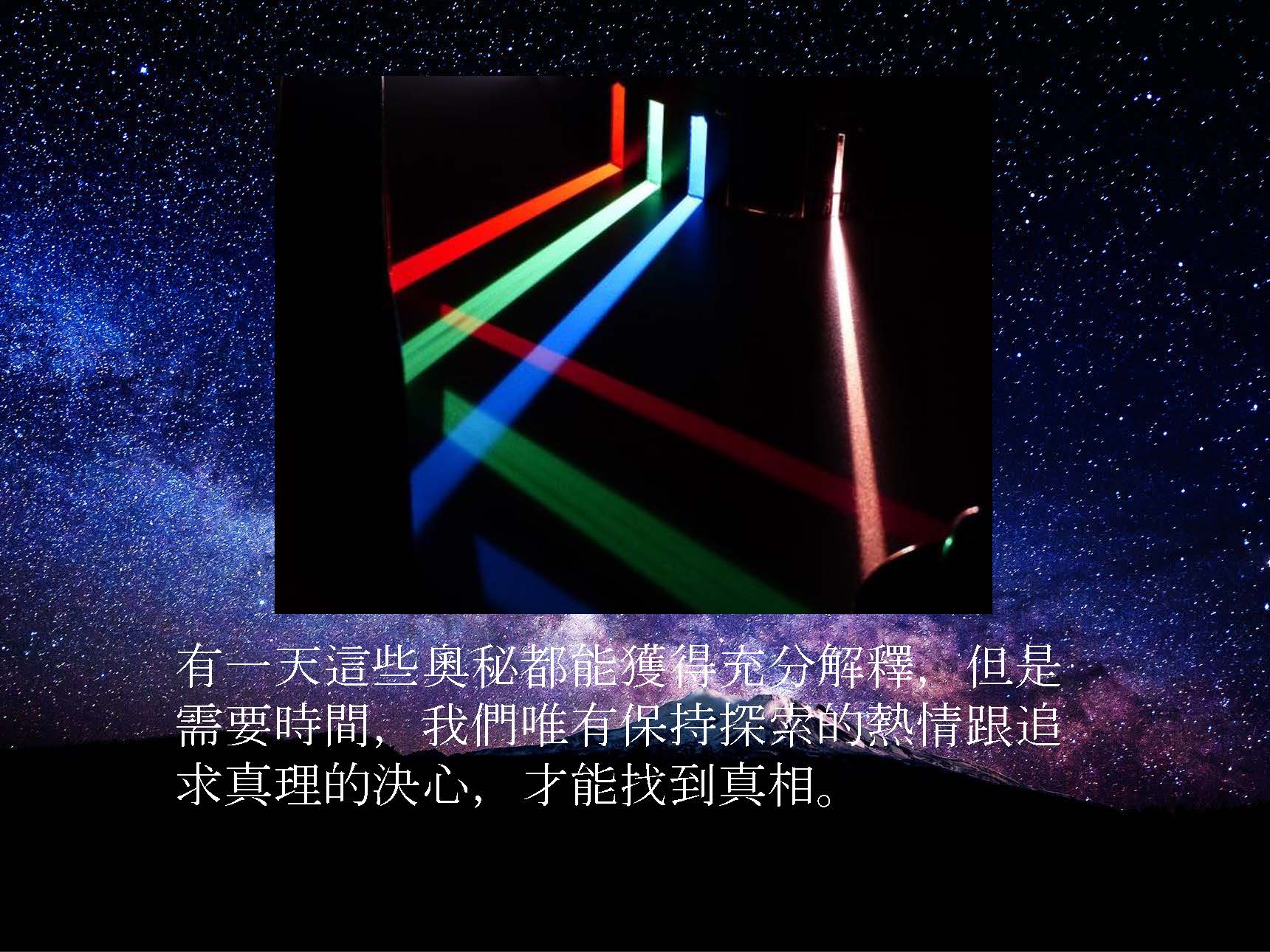 可以現在帶我去繞一圈回來就相信它,朋友說:好!現在請你閉上眼睛,原來不是肉體去星際旅遊而是靈魂或意識去,回來問說有無什麼啟發,原來我在宇宙間這麼渺小不要這麼自我