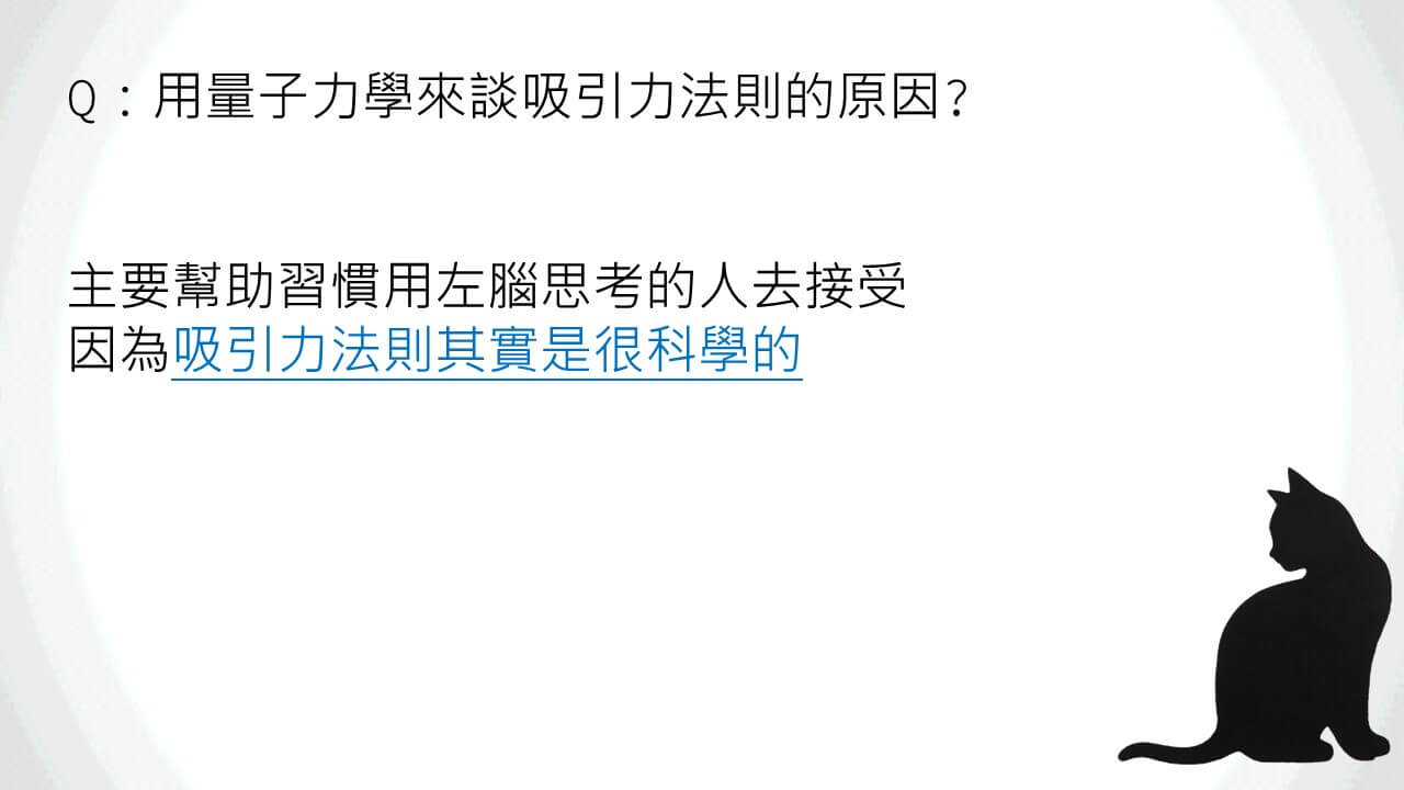 1. 用量子力學角度談吸引力法則,主要幫助習慣用左腦思考的人更容易接受