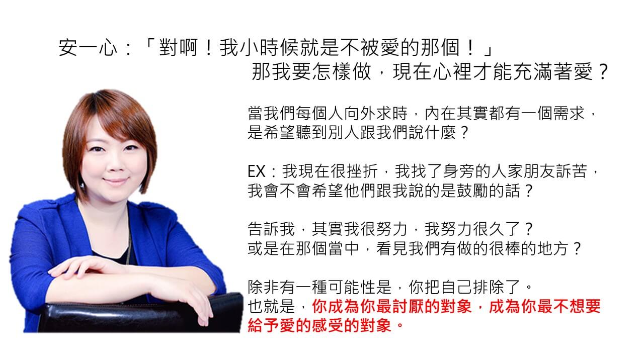 安:有的人在觀念上和體會上都懂了,但回去還是不斷感受到不被愛的感覺,那該怎麼辦呢?