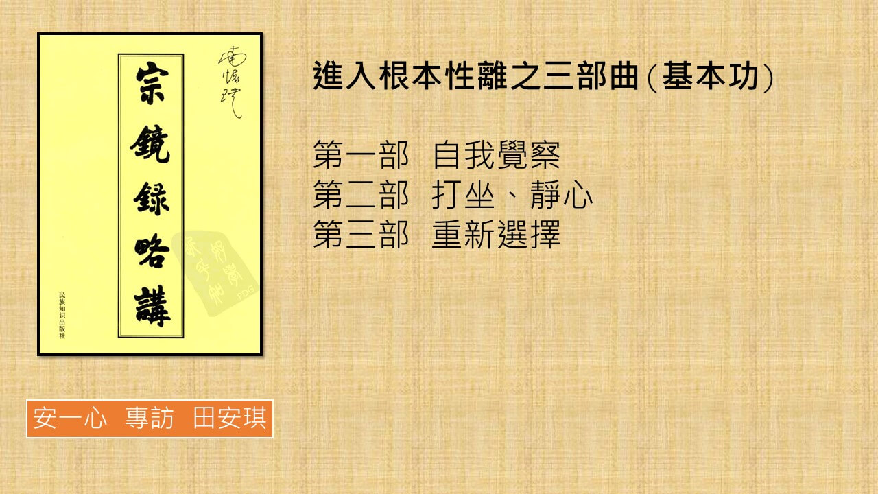 安琪: 謝謝一心,我有點拾人牙慧,看的是宗鏡錄略講,而不是宗鏡錄本文,略講是由南懷瑾講的 ,透過他的講述,就很容易懂,跟一心談時,就把它更白話一點!