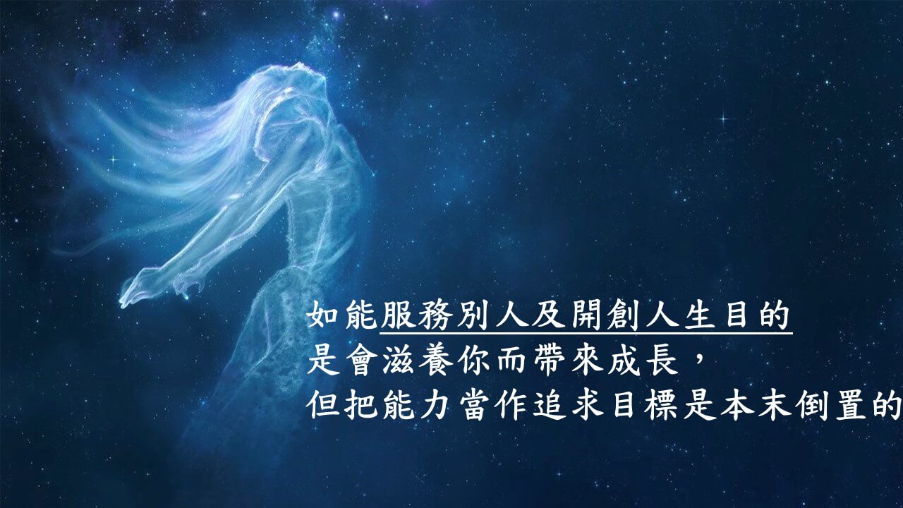 6. 如能服務別人及開創人生目的是會滋養你而帶來成長,但把能力當作追求目標是本末倒置的