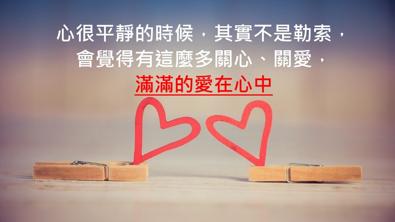 3. 你的心很平靜時其實不是勒索,會覺得怎麼這麼多關心、關愛,滿滿的愛在心中
