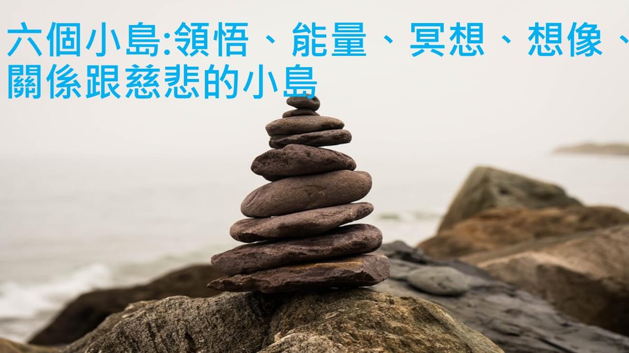 六個小島:領悟、能量、冥想、想像、關係跟慈悲的小島。