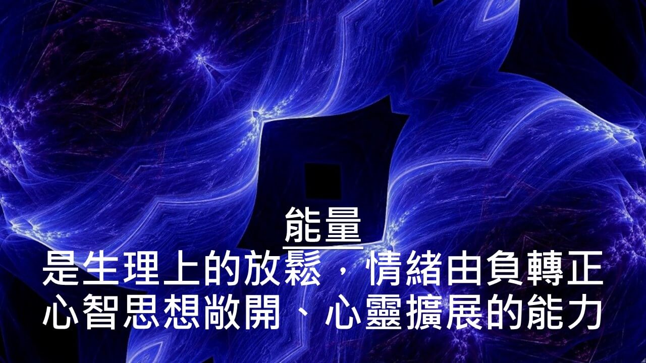 3.能量是生理上的放鬆,情緒由負轉正,心智思想的敞開、心靈擴展的能力,。