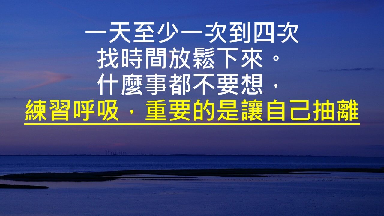 什麼事都不要想,練習書上寫的呼吸,重要的是讓自己抽離。