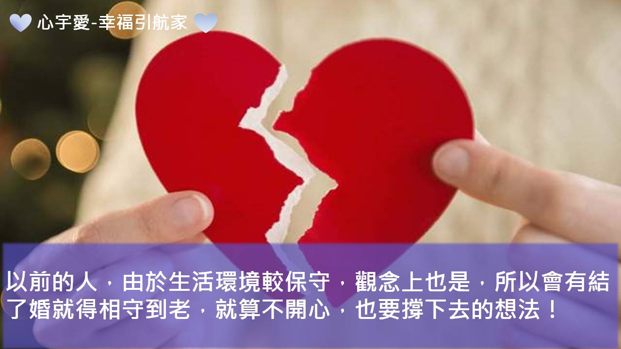 以前的人,由於他們生活的環境是比較保守的,觀念上也是,所以會有一種結了婚就得相守到老,就算不開心,也只能咬牙撐下去!
