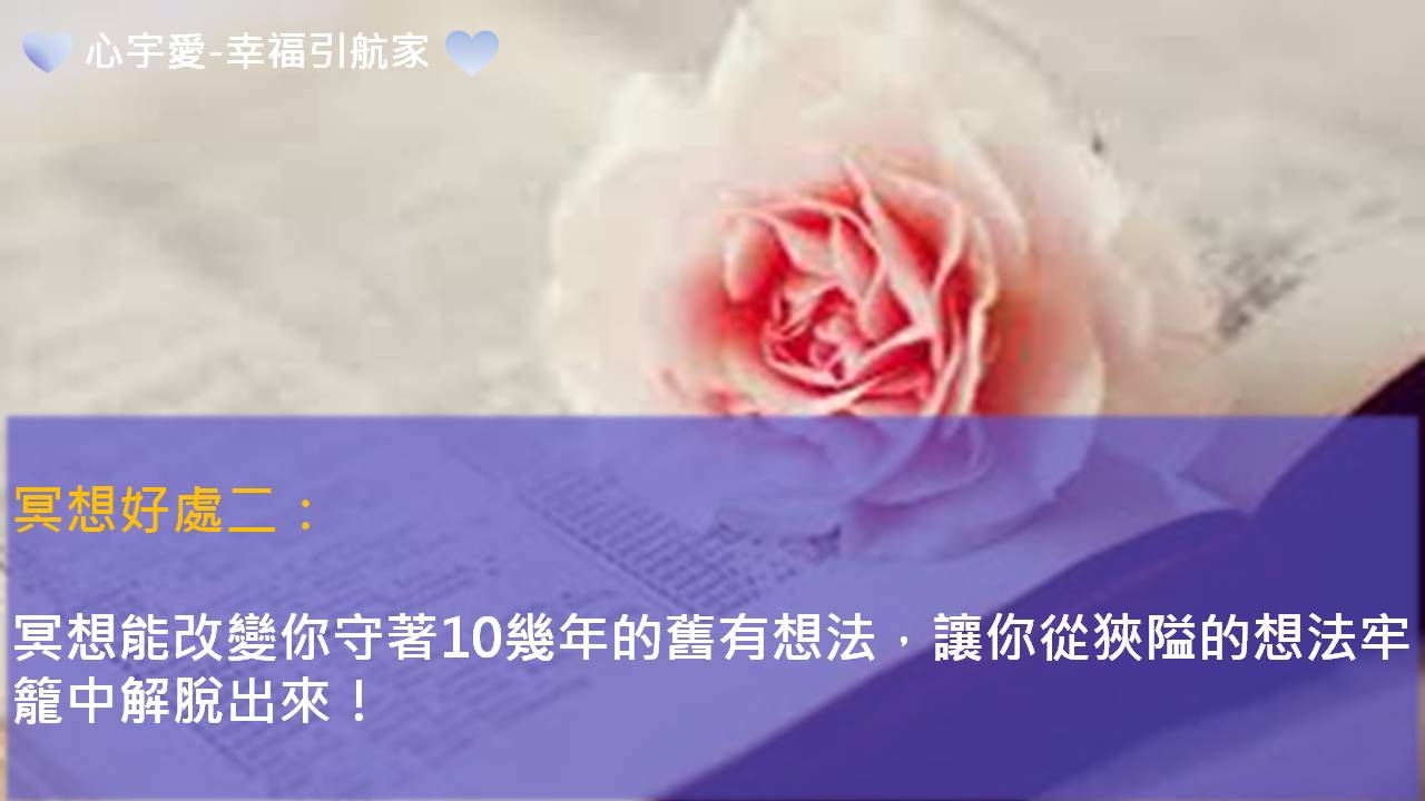 冥想好處二、:冥想可以透過潛移默化的方式來改變你守著10幾年的舊有想法,讓你從狹隘的想法牢籠中解脫出來!