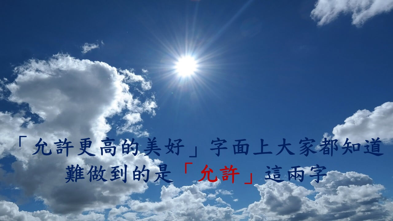 1. 「允許更高的美好」字面上大家都知道,比較難做到的是「允許」這兩字