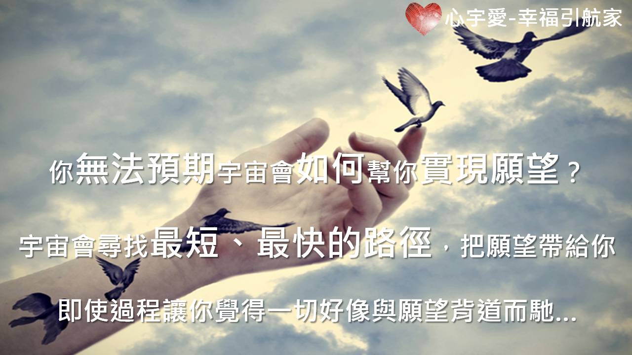 我還記得曾經看過一本心想事成法則的書,它寫到:「你一定可以實現你的夢想,只是你永遠無法預期宇宙會如何幫你實現?但宇宙永遠會尋找最短、最快的路徑,把你的願望帶來給你。也許在這過程,你覺得一切都與你的願望無關,甚至好像偏離軌道,離夢想更遠…」