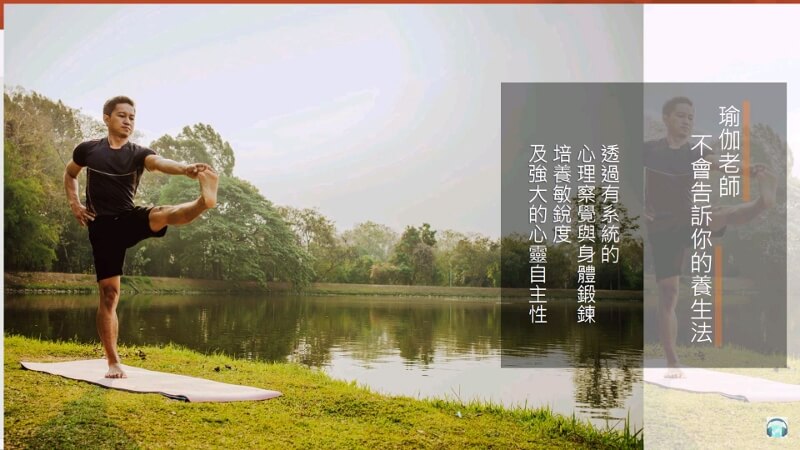 「瑜伽修練是透過有系統的心理察覺與身體鍛鍊,培養敏銳度及強大的心靈自主性。所以,瑜伽雖然不談論改命、創運,卻也在練習瑜伽時一點一滴淨化及微調我們看待生活的態度,並重組未來的人生藍圖。」