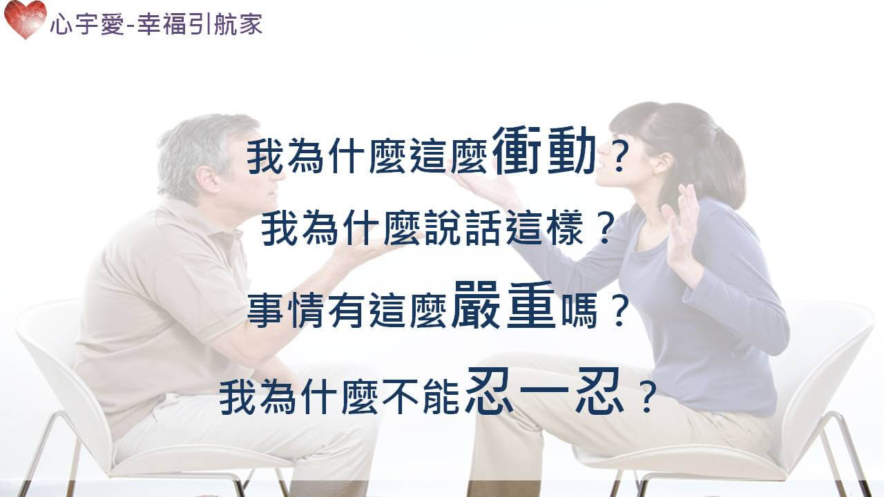 事後冷靜才思考:「我剛剛為什麼要這麼衝動?我為什麼說話這樣?事情有這麼嚴重嗎?我為什麼不能忍一忍?」