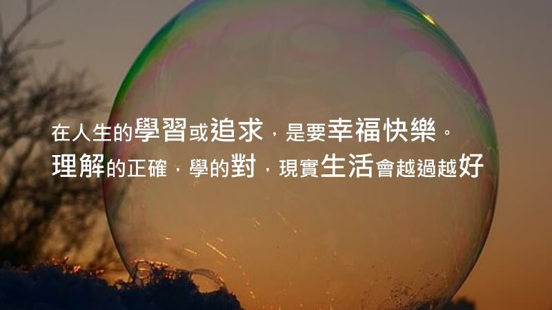 我現在過的比以前好,覺得比較幸福、比較快樂。我現在過的比那些還很辛苦的人過得好,我就會覺得我比較幸福比較快樂。這一種幸福快樂,它和真正的幸福快樂,和那種永恆的幸福快樂,是根本無法比的。我們在人生的學習,或者追求,就是要幸福快樂。