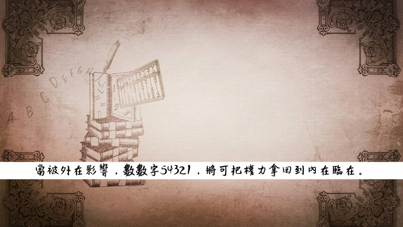 7.當我們被外在的狀況一直影響,數數字54321的數,代表已經把權力拿回到內在臨在的狀態。
