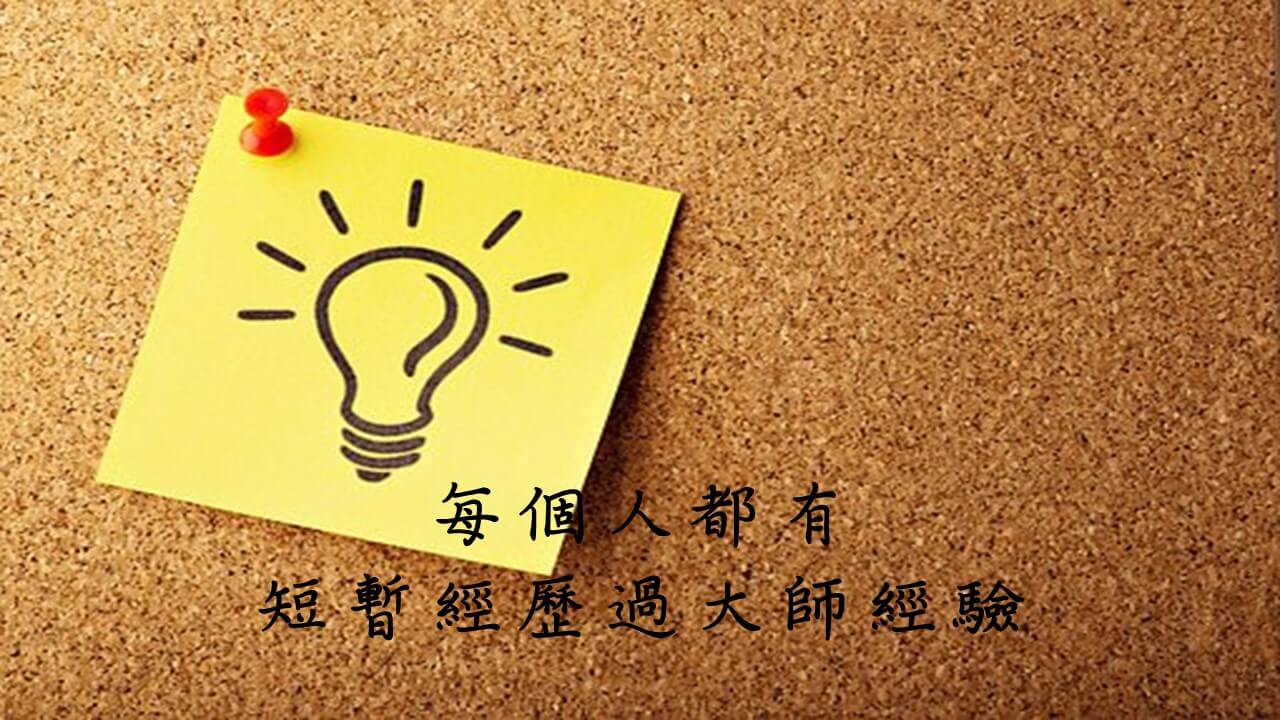 如何用EQ,讓世人看到大師功力成果,讓世人接受到一個階段,要再往上提升,要有積極跟創造階段喚起多重心智,保有赤子之心才是大師。