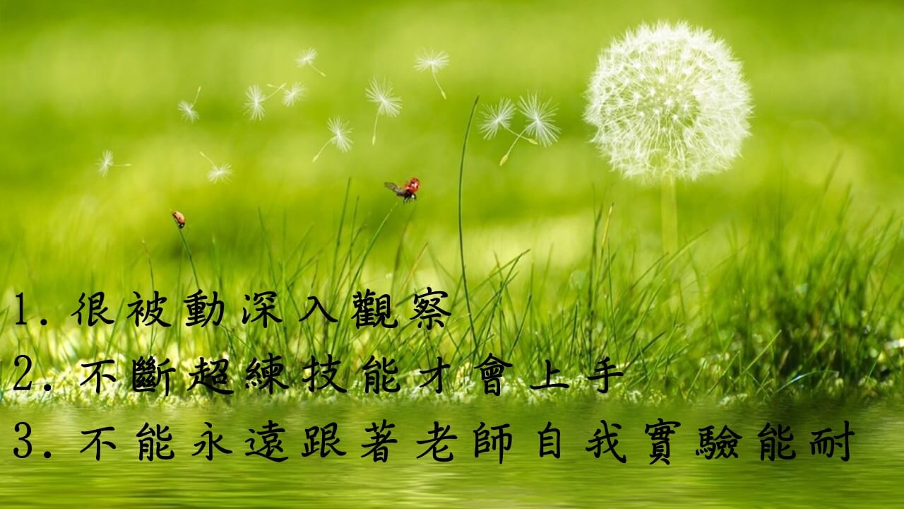 (3)階段:不能永遠跟著老師,要自我實驗能耐