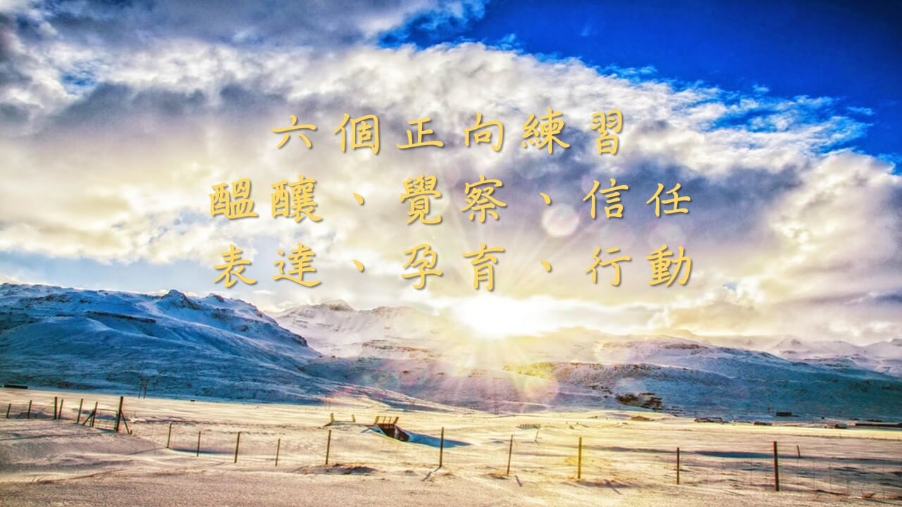 六個正向練習是,蘊釀、覺察、信任、表達、孕育跟行動。
