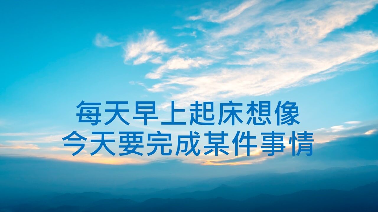 每天早上起床想像今天要完成某件事情,想想每天能達成什麼事是能做到的?