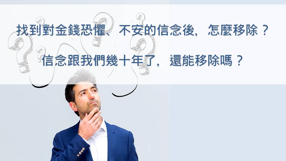 恩:如果我們找到了對金錢的恐懼、這些不安的信念是什麼的話,那有什麼方式可以移除?這些信念畢竟都跟我們幾十年了,還有移除的可能性嗎?