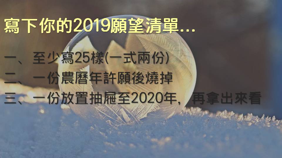 請讓各位聽眾朋友們輕輕鬆鬆的實現2019年清單上面所寫的願望…