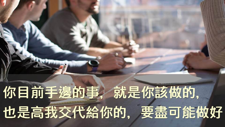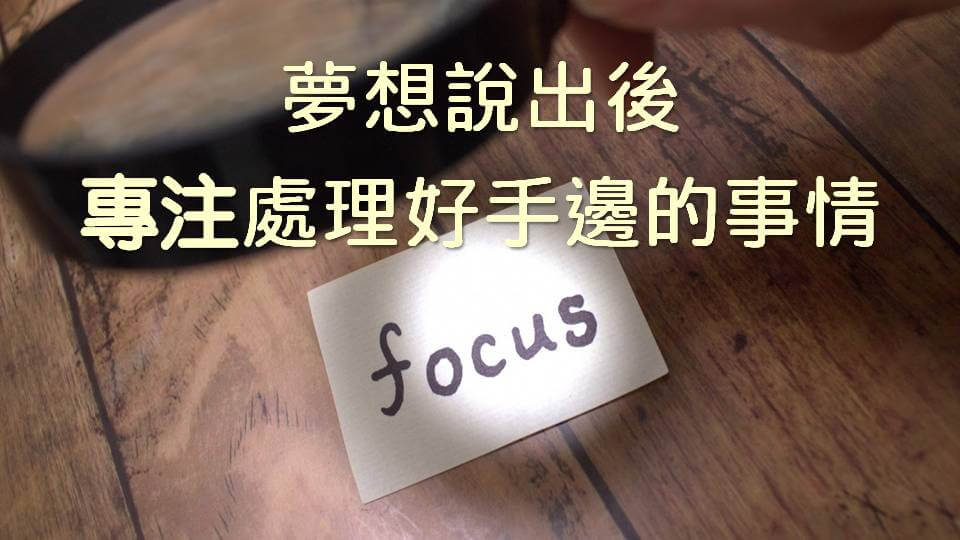 要做的只是把你的夢想說出來後,就好好處理周邊的事情,眼前要做的事情,家庭要顧,那就好好的去顧,事情要做那就好好去做。老闆在發脾氣,好好的安撫他一下。