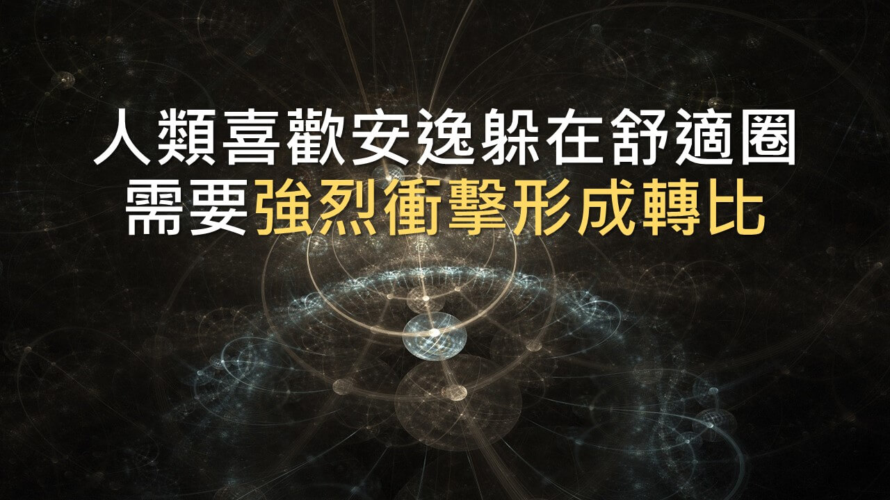 契機讓他去開啟,我們人類其實大部分都喜歡安逸,躲在舒適圈裏面,需要有一個強烈的衝擊,才能把你們拉出來,我們需要這方面的轉化。
