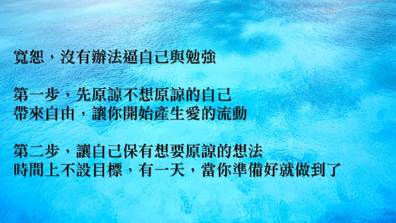 所謂的寬恕也包含寬恕自己,也要放過自己,這一點,大家常常會忘記。