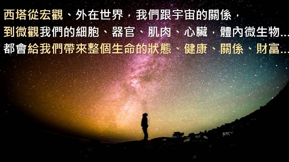 無論從宏觀,我們的外在世界,我們跟宇宙的關係;微觀我們每一顆細胞、每一個器官、肌肉、心臟,包括身體內的微生物,都會給我們人帶來整個生命的狀態、健康、關係,甚至是財富…