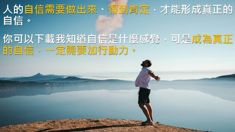 你可以下載我知道自信是什麼感覺,可是成為真正的自信,一定是需要加行動力。