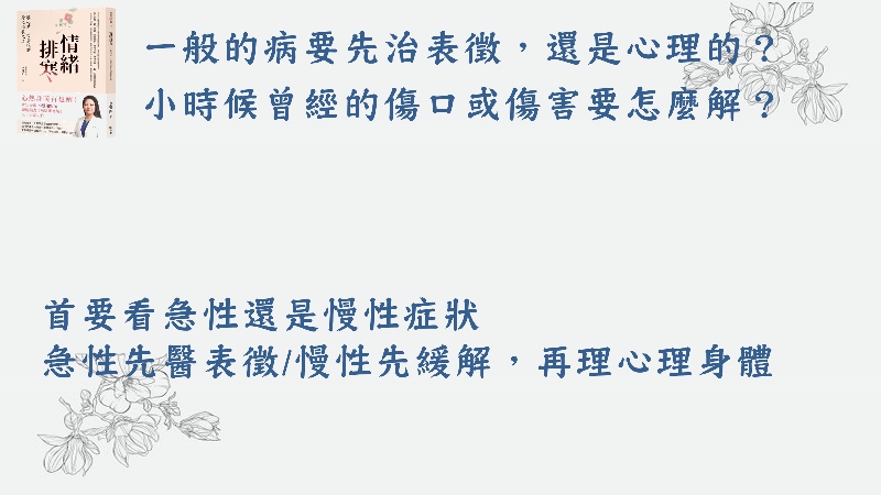 李醫師說一般的病,看起來都是表徵,那到底是要先治表徵,還是心理的?