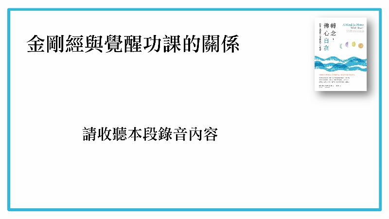 講得真精彩,這本書是很有趣的,竟然把《金剛經》這個概念完全融入覺醒的功課,到底怎麼把它融合在裡面呢?
