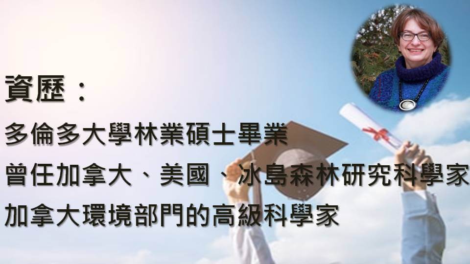 老師已經認證二十門的希塔課程,她非常的優秀, 是多倫多大學林業碩士畢業,曾經在加拿大、美國、冰島擔任森林研究科學家,也是加拿大環境部門的高級科學家,專門研究生物的多樣性和氣候變化。
